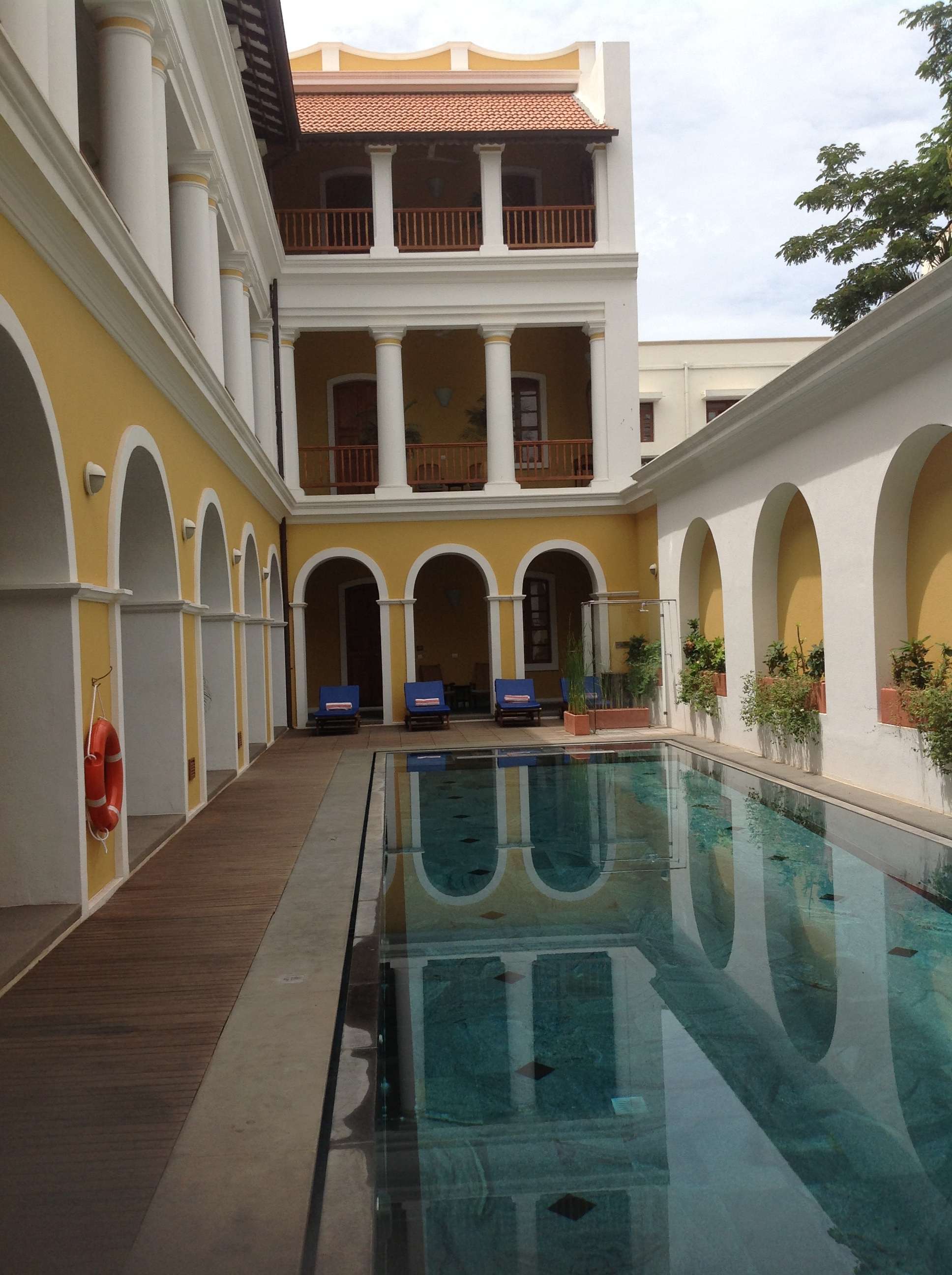Originally built to serve as the mayor�s residence, this 5-star heritage property is surrounded by a garden and is a 5-minute walk from Pondicherry Beach. It offers free Wi-Fi access throughout its premises. Street parking is available. Le Dupleix is a 10-minute walk from Raj Nivas and a 15-minute drive from Pondicherry Railway Station. Villupuram Town is 36 km away. Fitted with tiled or wooden flooring, air-conditioned rooms feature a TV with satellite channels and a writing desk. Coffee/tea making facilities and a minibar are included. Private bathrooms come with hot and cold running water, as well as free toiletries. Courtyard Restaurant serves a selection of Indian, European and French cuisines. 24-hour room service is provided. The Governor's Lounge Bar offers a relaxing ambience to catch up with friends over drinks. Staff at the 24-hour front desk can provide assistance with luggage storage, airport shuttle or fax/photocopying services. White Town is a great choice for travellers interested in�history,�ambience�and�architecture.
